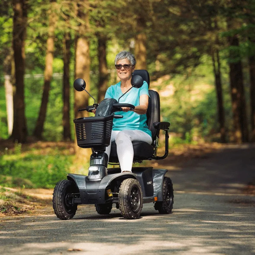 The Pursuit 2 scooter by Pride Mobility is an all-terrain chair that for any adventure day or night. The
